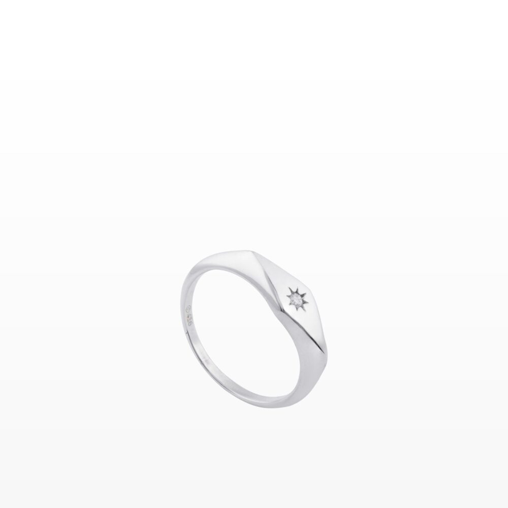 Thiết kế nhẫn trơn thanh lịch, điểm nhấn ngôi sao nhỏ khắc tinh tế gắn với viên kim cương năm trọn bên trong như một ánh sáng dịu dàng giữa đời thường. Không phô trương, chiếc nhẫn mang vẻ đẹp trầm tĩnh và vững vàng – tượng trưng cho niềm tin, hy vọng và một điều quý giá luôn được giữ kín trong tim.