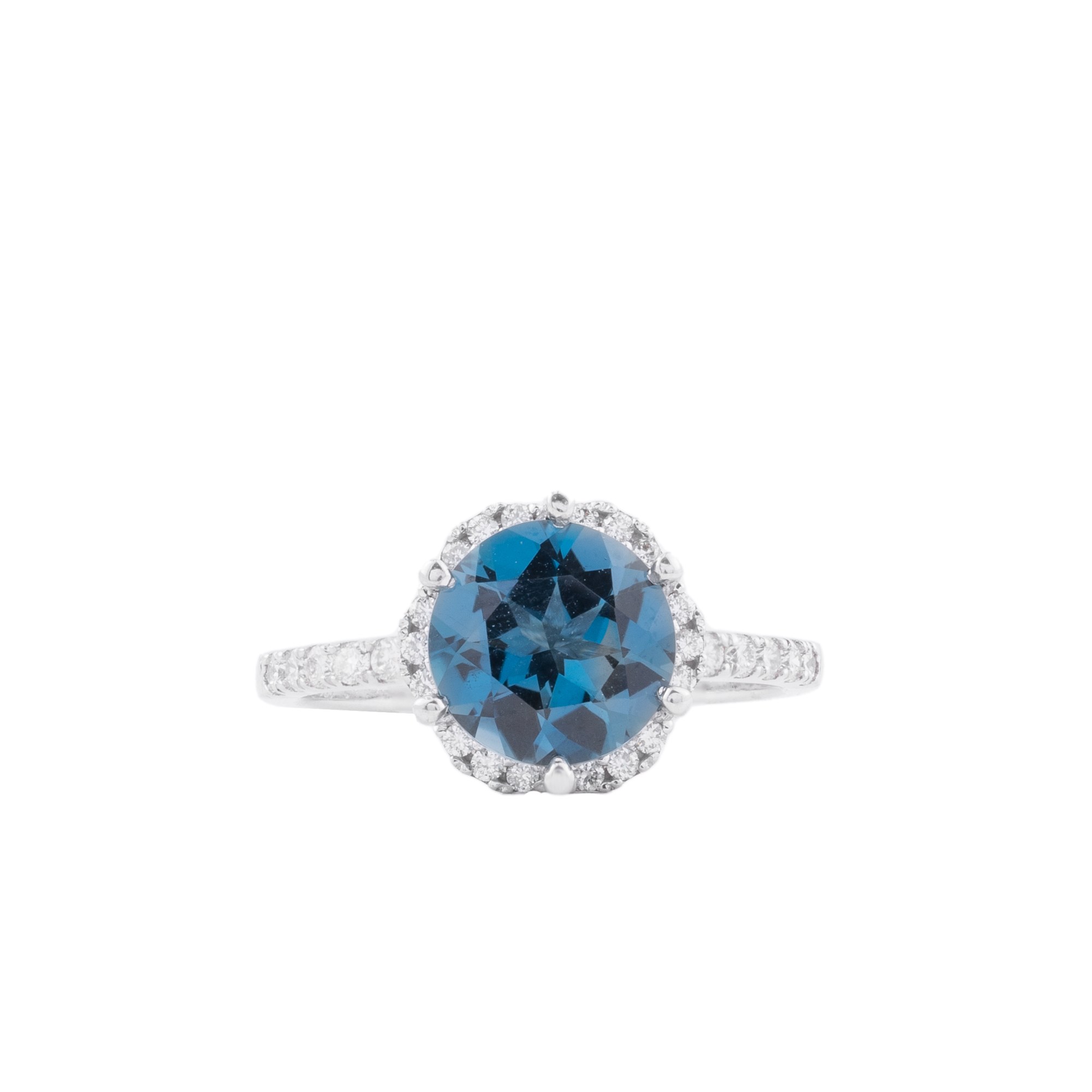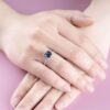 Chiếc nhẫn nổi bật với viên đá chủ sắc xanh sâu thẳm, mang vẻ đẹp huyền bí và cuốn hút như đại dương thu nhỏ. Dáng oval mềm mại giúp tối đa hóa diện tích phản chiếu ánh sáng, khiến viên đá luôn rực rỡ và nổi bật trên tay.