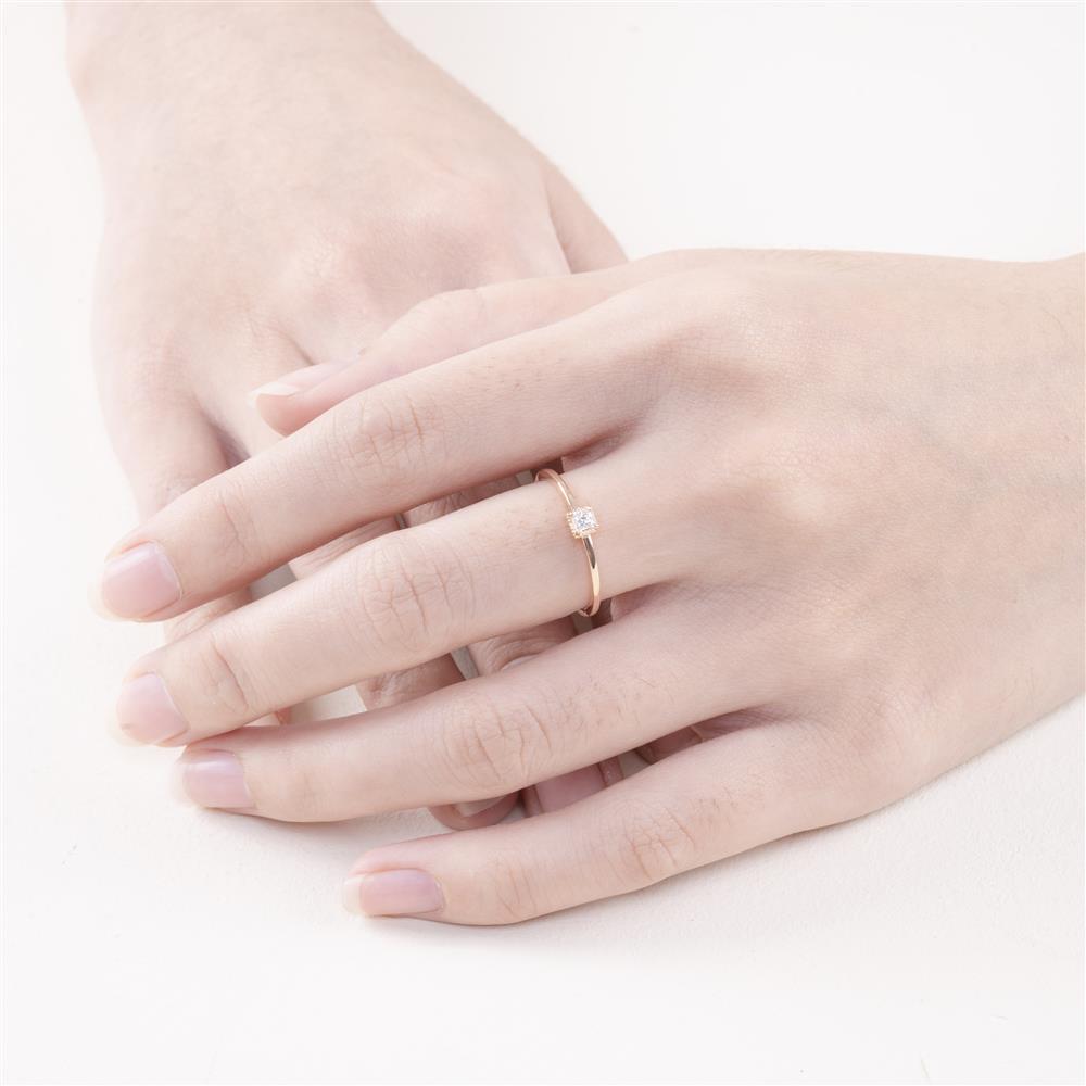 Chiếc nhẫn sở hữu thiết kế tối giản nhưng đầy tinh tế với viên kim cương cắt vuông được nâng đỡ bởi 4 chấu nhỏ gọn, tạo cảm giác thanh thoát và hiện đại. Dáng nhẫn mảnh giúp tôn trọn vẻ sáng lấp lánh của viên kim cương, mang đến nét đẹp trong trẻo, tinh khiết nhưng vẫn vô cùng sang trọng.