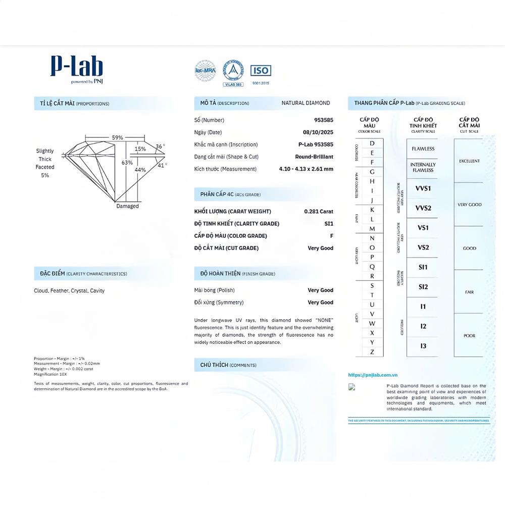 | Kim cương viên: | 4.10 - 4.13 F/SI1 |