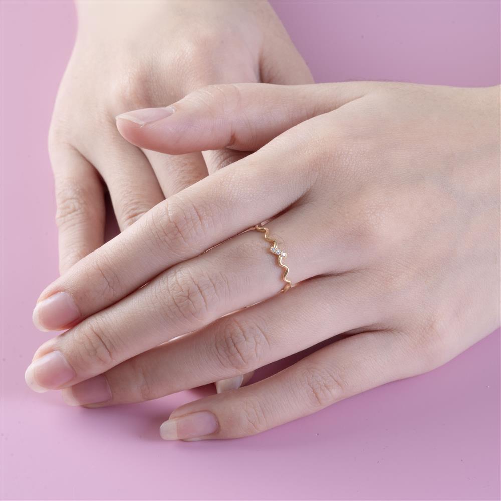 Tựa như một đường sóng mềm mại lướt nhẹ trên mặt nước, chiếc nhẫn uốn sóng kim cương mang vẻ đẹp uyển chuyển, gợi cảm và đầy cuốn hút. Những đường cong được tạo hình tinh tế trên thân nhẫn không tuân theo khuôn mẫu cứng nhắc, mà tự do uốn lượn – như cảm xúc của người phụ nữ khi yêu, lúc dịu dàng, lúc mãnh liệt nhưng luôn cuốn hút.