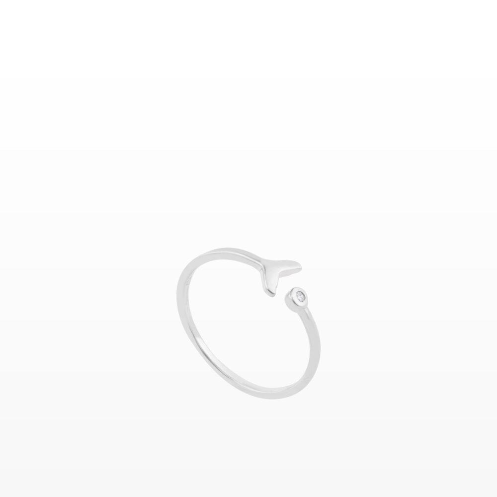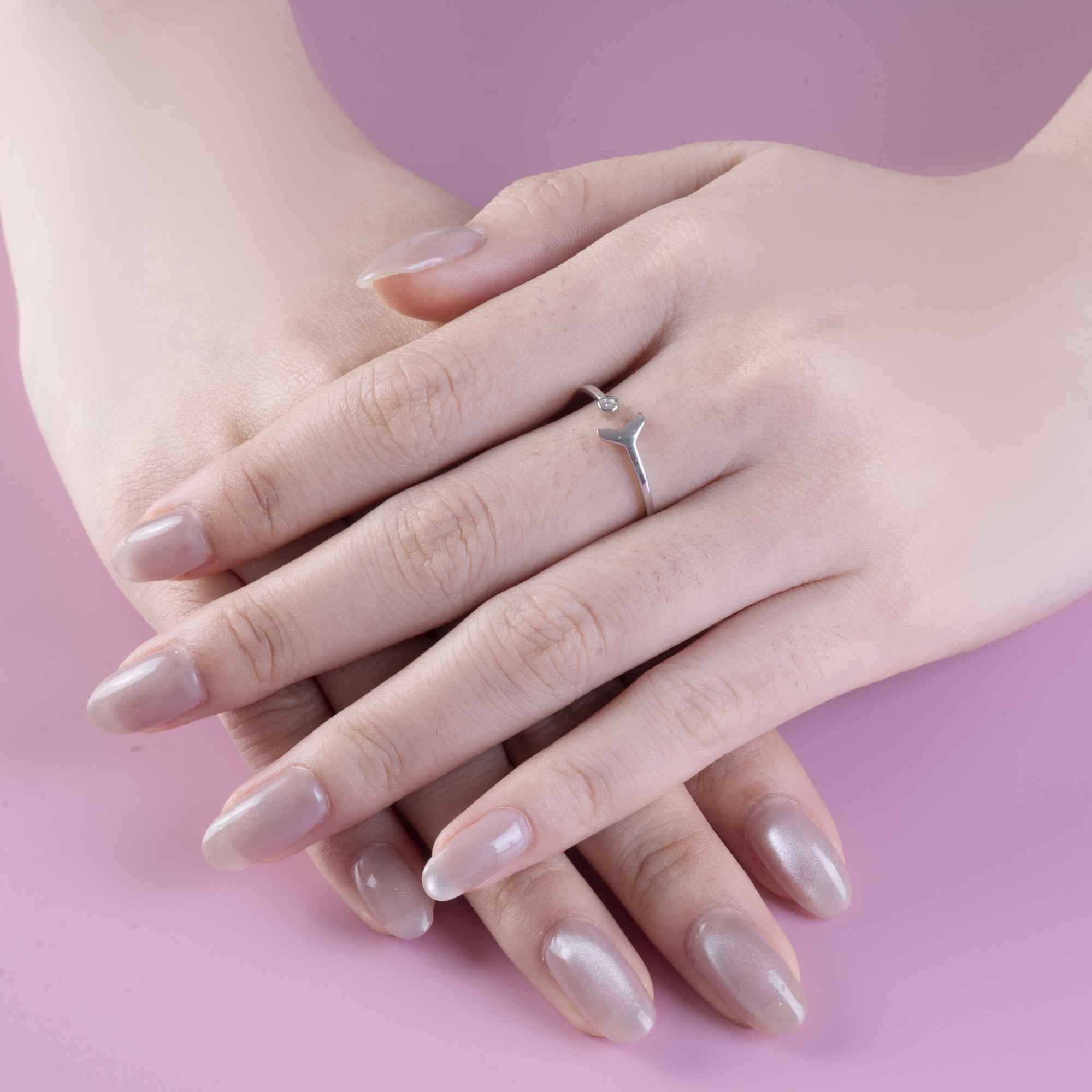 Tinh khôi và đầy chất thơ, chiếc nhẫn màu trắng họa tiết đuôi cá đính kim cương tấm gợi lên câu chuyện về những cảm xúc sâu lắng, nơi tình yêu không ồn ào nhưng bền bỉ và thăng hoa theo thời gian. Hình đuôi cá mềm mại, uốn cong duyên dáng như một cái chạm khẽ của đại dương – biểu trưng cho sự che chở, gắn kết và những rung động chân thành từ trái tim.