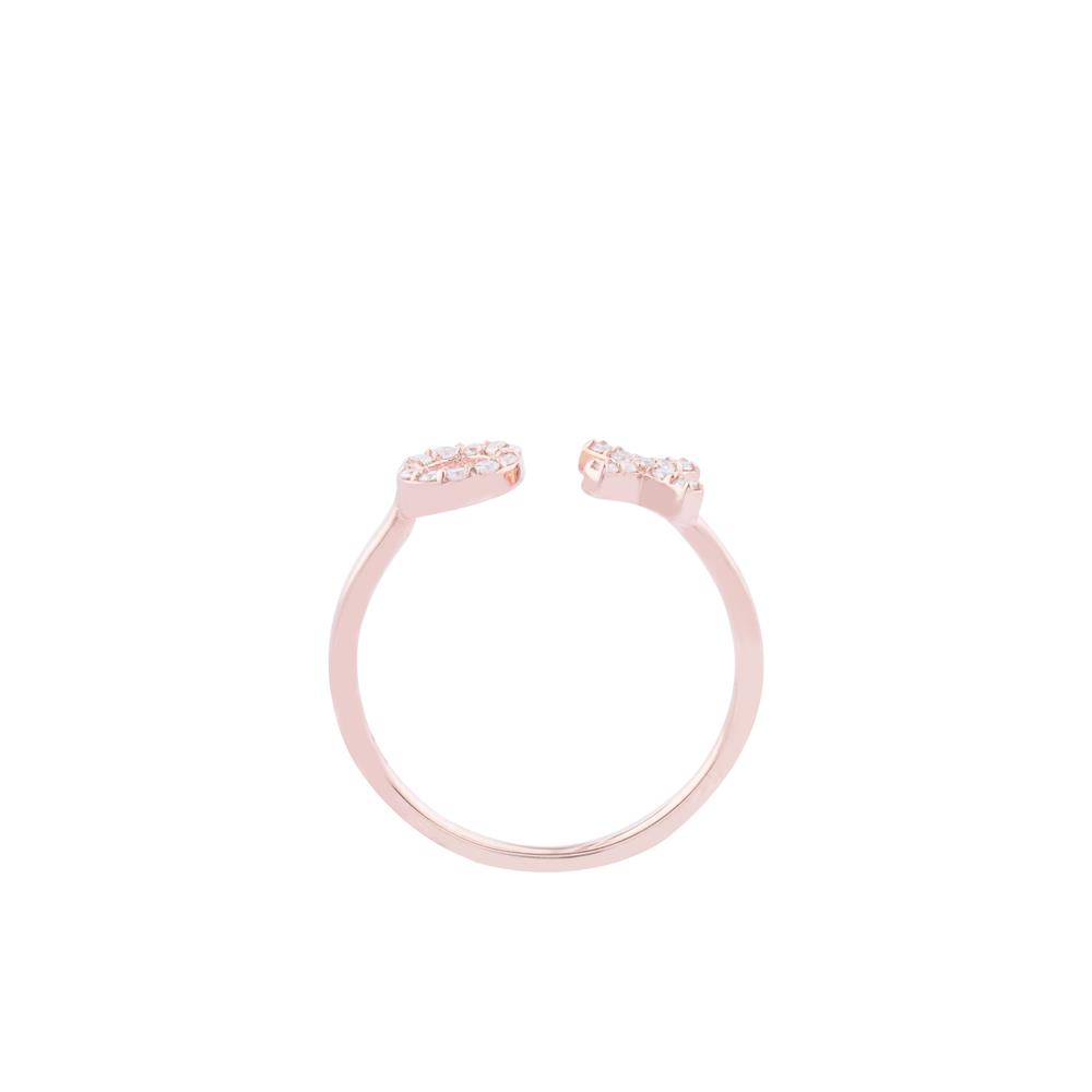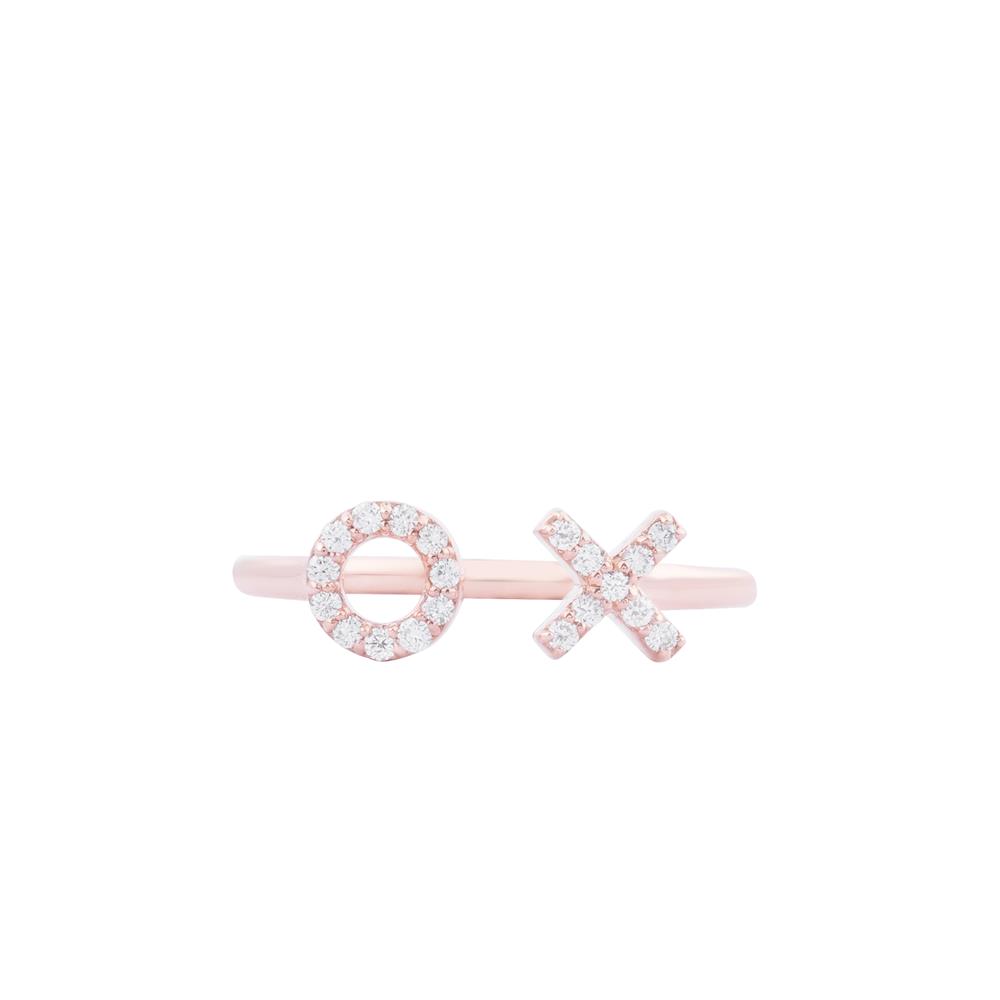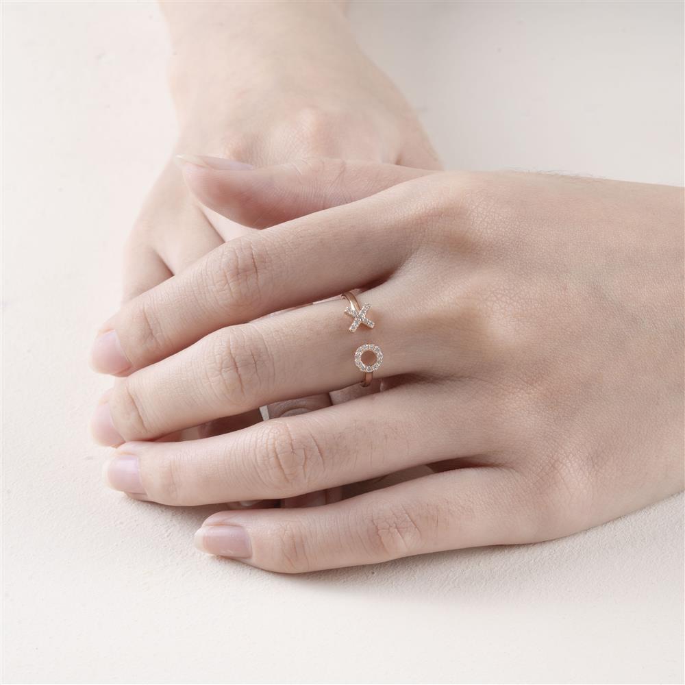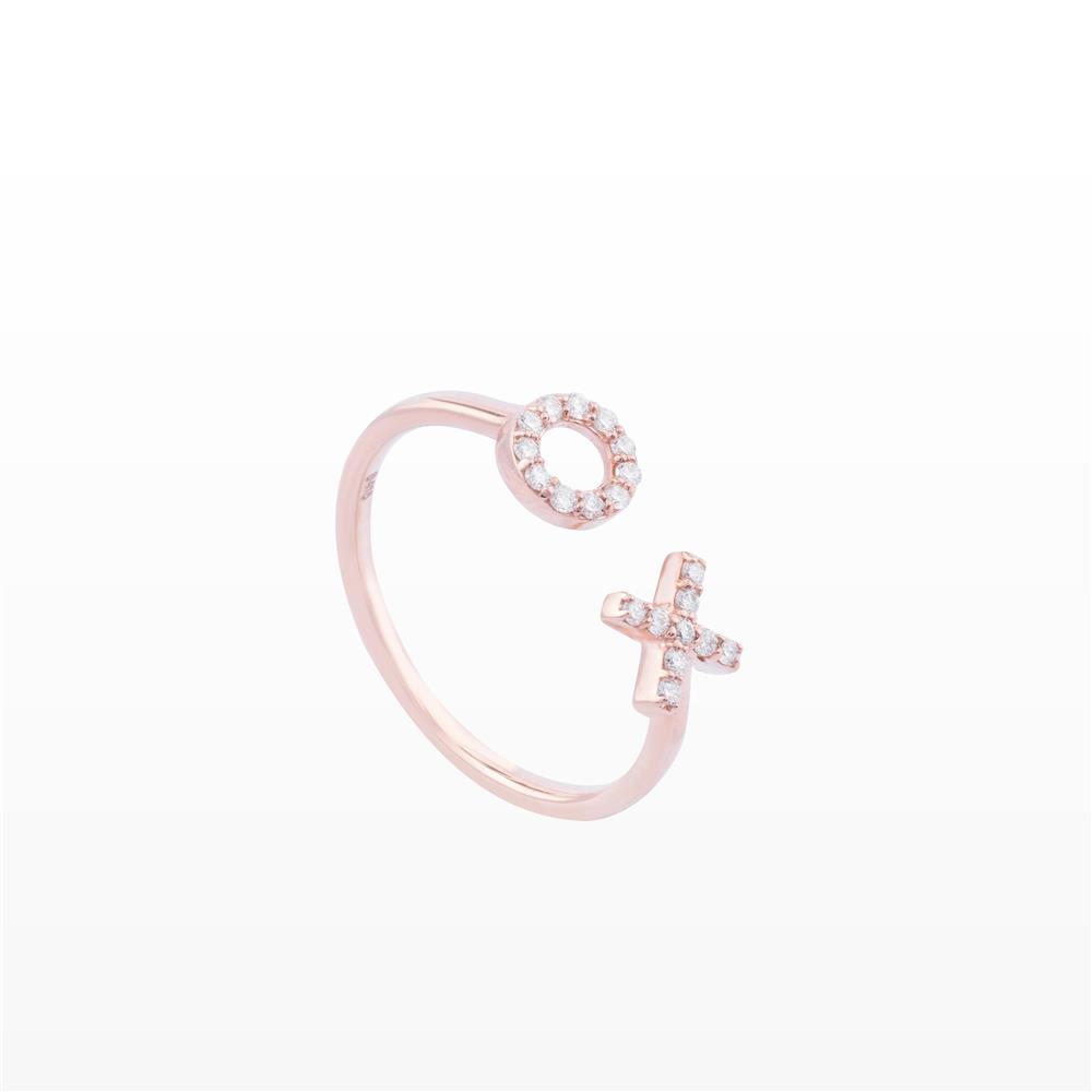 Thiết kế nhẫn dáng hở (open ring) gây ấn tượng với hai biểu tượng đối lập nhưng hài hòa: chữ O tròn đầy và chữ X sắc nét, cả hai đều được đính kim cương tinh xảo. Sự kết hợp tạo nên một tổng thể vừa hiện đại, phá cách vừa mang thông điệp thú vị về sự kết nối, lựa chọn và cân bằng cảm xúc.
