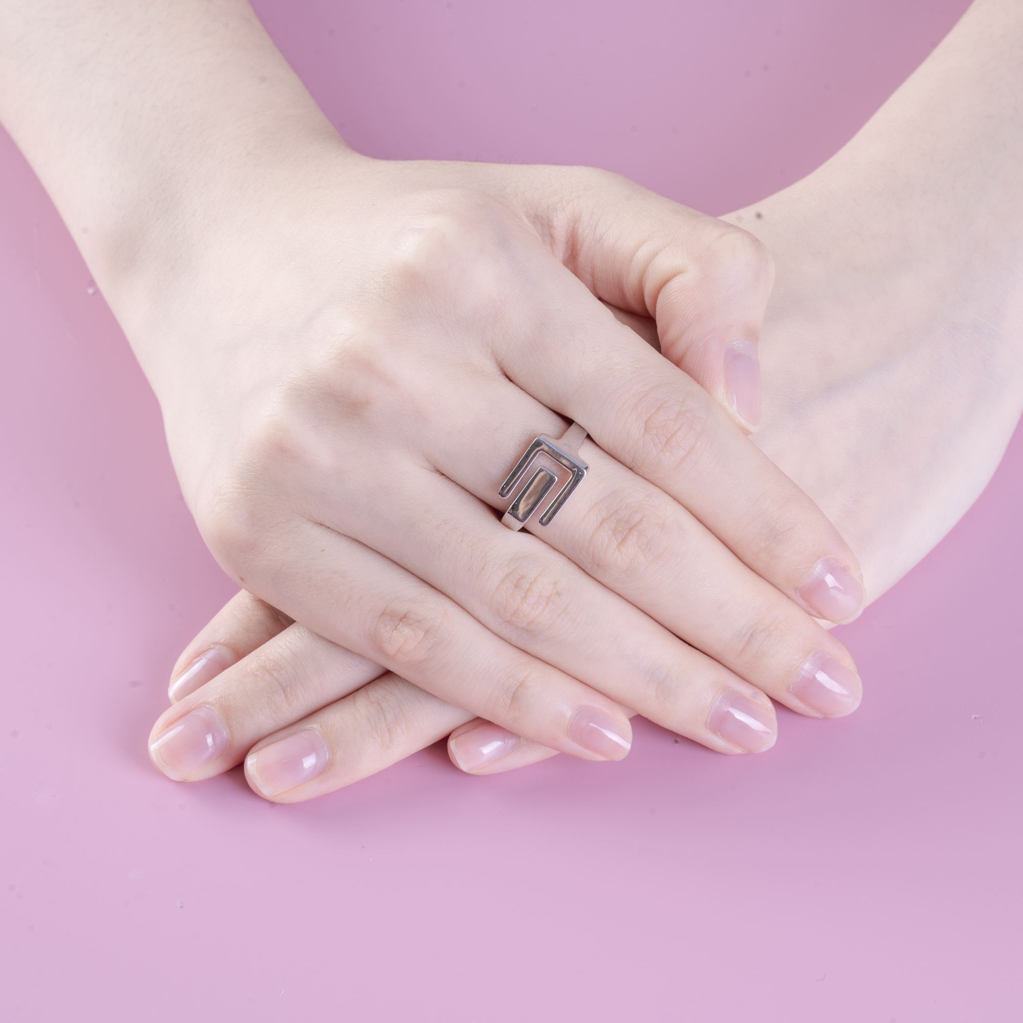 Chiếc nhẫn gây ấn tượng với thiết kế hình học phá cách, lấy cảm hứng từ những đường nét tối giản nhưng dứt khoát. Cấu trúc gấp khúc độc đáo tạo nên hiệu ứng chiều sâu, mang lại cảm giác hiện đại và khác biệt ngay trên tay.