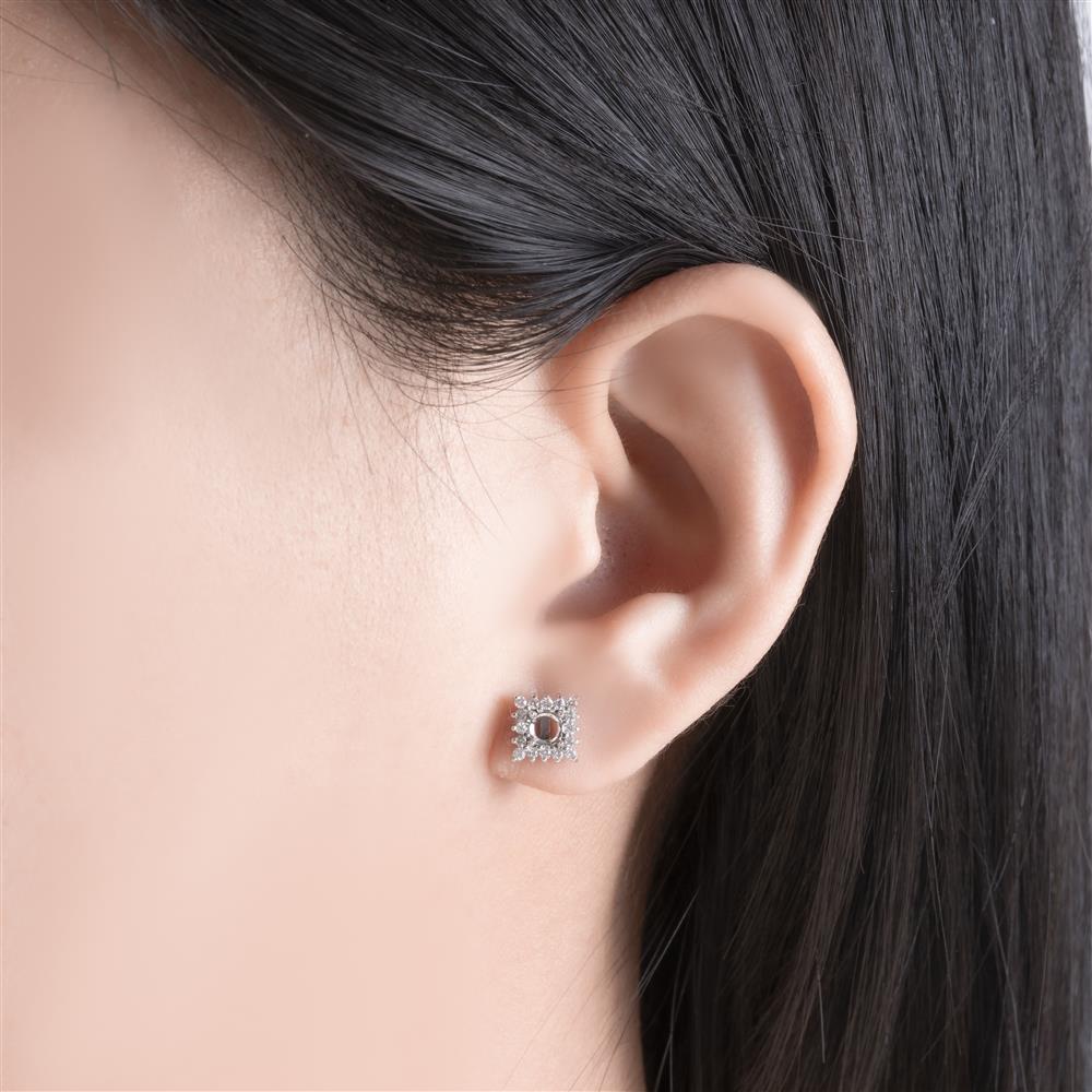 Thiết kế dáng vuông hiện đại, nổi bật với vòng kim cương tấm đính bao quanh, tạo hiệu ứng hào quang lấp lánh và làm tôn bật phần trung tâm. Cấu trúc cân đối, các viên kim cương được sắp xếp đều đặn, mang lại cảm giác sang trọng nhưng vẫn gọn gàng, tinh tế.