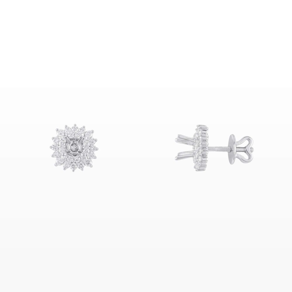 Đôi bông tai được thiết kế với cấu trúc halo nhiều tầng tinh xảo, nơi các viên kim cương nhỏ được sắp xếp đều đặn bao quanh tâm, tạo nên hiệu ứng ánh sáng lan tỏa mạnh mẽ và chiều sâu ấn tượng. Mỗi góc nhìn đều phản chiếu vẻ lấp lánh sống động, làm nổi bật nét sang trọng và đẳng cấp của thiết kế.