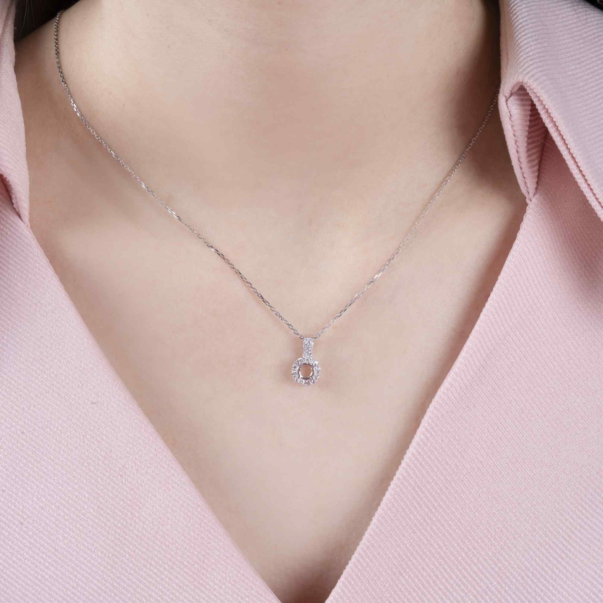 hiết kế thanh treo đính kim cương kéo dài lên sợi dây, tạo cảm giác liền mạch và tinh tế, giúp tổng thể trở nên cân đối, sang trọng nhưng vẫn rất nhẹ nhàng. Mỗi góc cạnh đều được xử lý mềm mại, để ánh sáng phản chiếu một cách êm ái, không phô trương mà bền bỉ theo thời gian.