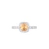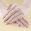 Chiếc nhẫn tỏa sáng như một mặt trời nhỏ trên tay, mang sắc vàng cam ấm áp của viên đá chủ – biểu tượng cho niềm tin, hạnh phúc và năng lượng tích cực. Dải kim cương nhỏ đính dọc theo thân nhẫn tạo nên hiệu ứng lung linh diệu kỳ, khiến mỗi cử động của bàn tay đều trở nên rực rỡ và thu hút ánh nhìn. Đây là thiết kế dành cho người phụ nữ hiện đại – thanh lịch, tự tin và luôn mang trong mình tinh thần tươi mới, tràn đầy sức sống.