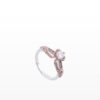 Tựa như một bản hòa ca giữa ánh sáng và cảm xúc, chiếc nhẫn sở hữu thiết kế dải pave kim cương tấm đính dọc thân, tỏa sáng rực rỡ từ mọi góc nhìn. Ở trung tâm, chi tiết nơ vàng hồng được tinh xảo đan xen dưới đài đá, như lời thì thầm ngọt ngào của tình yêu.