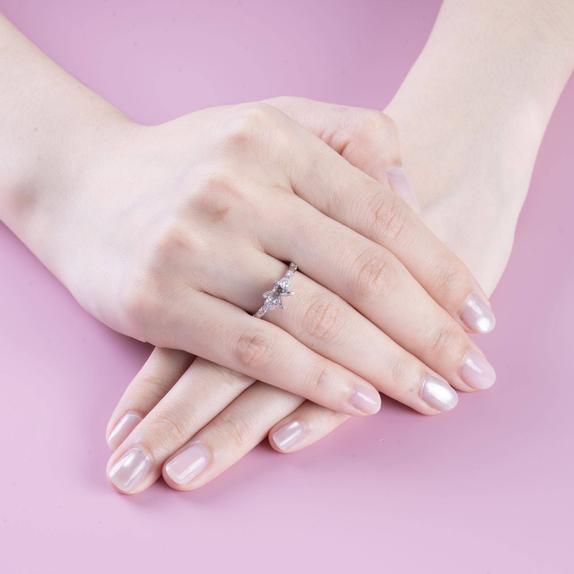 Điểm xuyết kim cương nhỏ dọc thân nhẫn tạo hiệu ứng ánh sáng nhẹ nhàng, làm tổng thể thêm phần thanh thoát và nữ tính. Đây là lựa chọn hoàn hảo cho nàng yêu thích vẻ đẹp tinh tế, dịu dàng nhưng vẫn nổi bật.