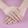 Thân nhẫn thanh mảnh được viền dọc bởi những viên kim cương , xếp đều như chuỗi ánh sáng liên tiếp, tượng trưng cho hành trình yêu thương được xây nên từ từng khoảnh khắc chân thành. Mỗi viên là một nhịp cảm xúc, lấp lánh nhưng dịu dàng, không phô trương mà sâu lắng.