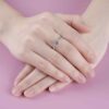 Thân nhẫn được tạo hình mềm mại với những đường cong uyển chuyển, như dòng chảy êm đềm ôm lấy ngón tay. Dọc theo hai bên là dải kim cương nhỏ lấp lánh, ánh sáng dịu dàng điểm xuyết từng nhịp, tựa những khoảnh khắc yêu thương được gìn giữ qua năm tháng. Mỗi chi tiết đều được chăm chút tinh xảo, để vẻ đẹp không phô trương mà ở lại rất lâu.