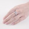 Điều làm nên vẻ sang trọng của mẫu nhẫn chính là dải kim cương tấm đính dày đặc chạy suốt thân nhẫn và ôm trọn phần vai. Các viên kim cương được sắp xếp tinh xảo tạo nên hiệu ứng “dòng sáng” lấp lánh, khiến tổng thể chiếc nhẫn trở nên rực rỡ hơn bao giờ hết.