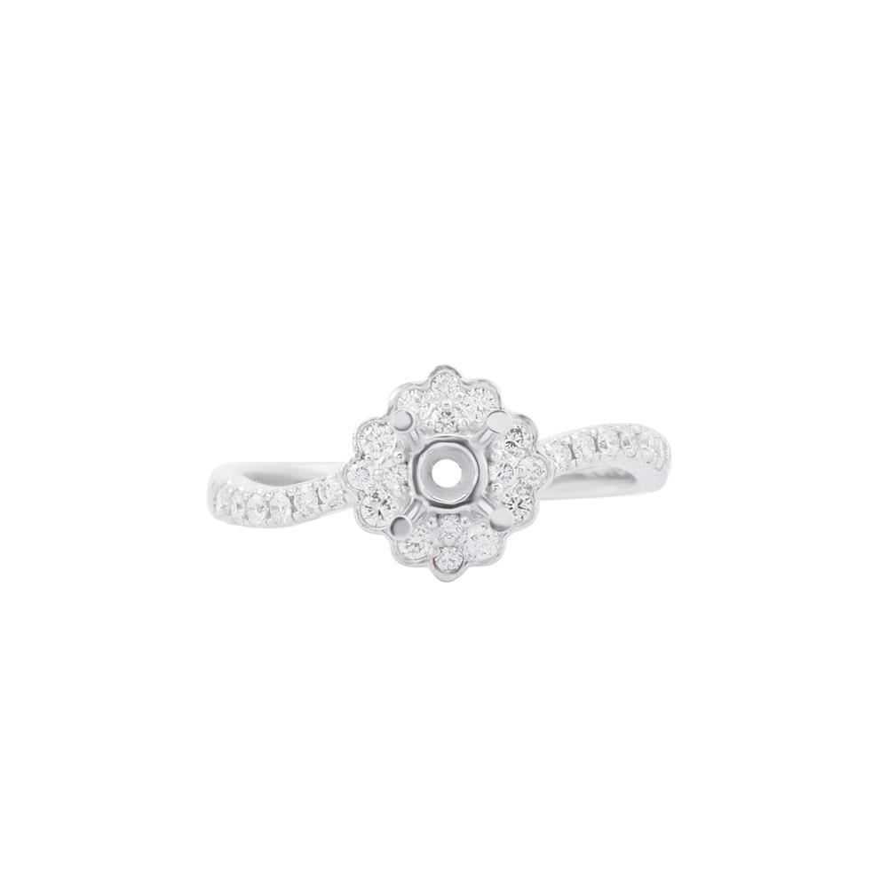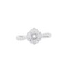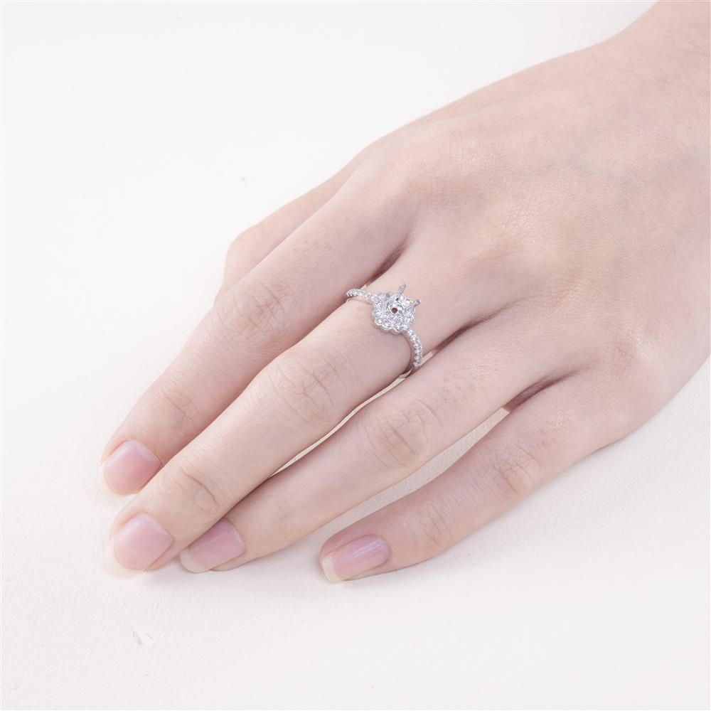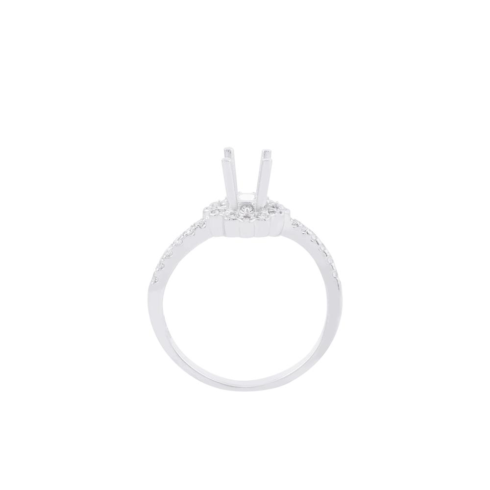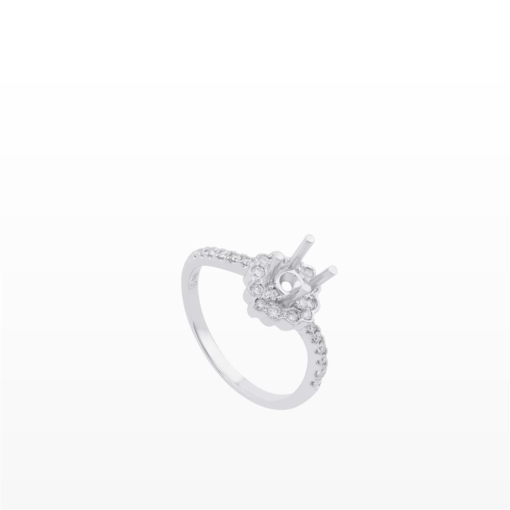 Chiếc nhẫn sở hữu thiết kế ổ hoa tròn tinh xảo, được tạo thành từ những viên kim cương tấm được sắp xếp theo hình cánh hoa đồng đều, lấp lánh như một đóa hoa đang nở rộ. Phần ổ được chế tác chắc chắn, sẵn sàng nâng đỡ và tôn vinh viên kim cương chủ ở vị trí trung tâm – nơi sẽ trở thành điểm sáng rực rỡ nhất trên tay.