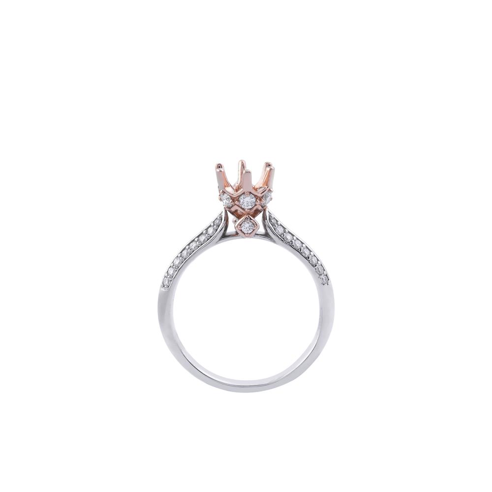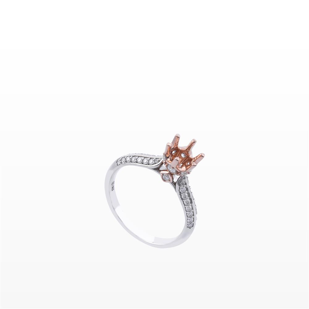 Nhẫn kim cương ổ chủ dáng vương miện mang vẻ đẹp sang trọng và đầy khí chất, được thiết kế dành riêng để tôn vinh viên đá chủ ở vị trí trung tâm. Phần ổ nhẫn tạo hình vương miện tinh xảo với sắc vàng hồng nổi bật, vừa nâng đỡ viên đá một cách chắc chắn vừa gợi cảm giác quyền quý, kiêu sa.