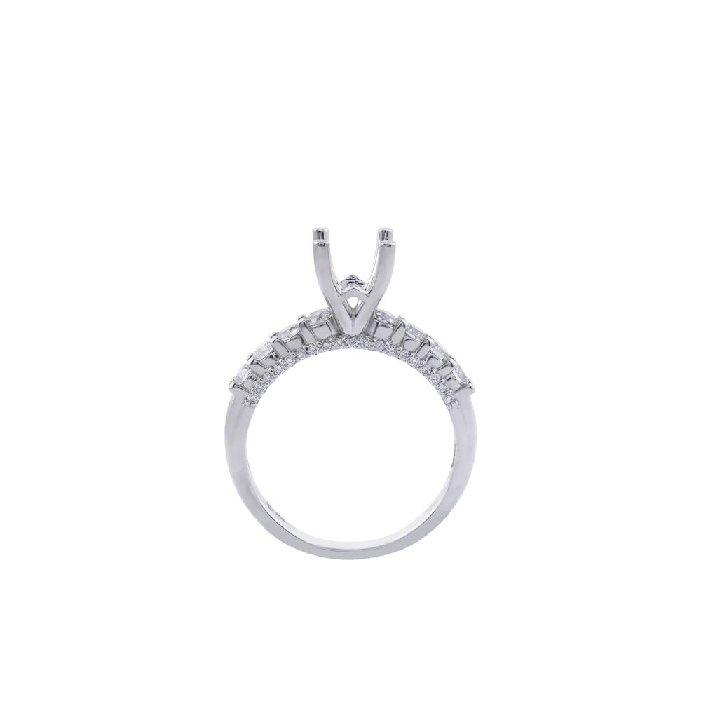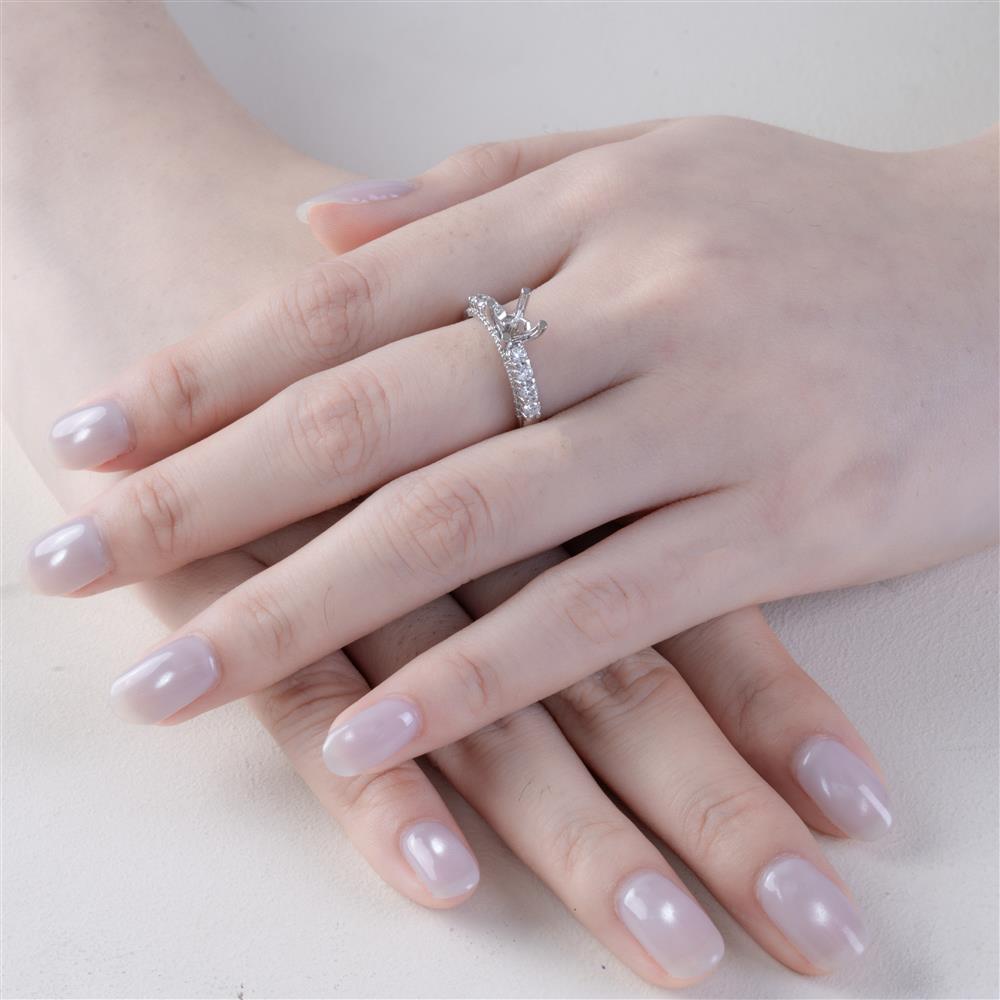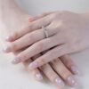 Nhẫn kim cương ổ chủ dáng eternity ánh trắng mang vẻ đẹp sang trọng và hiện đại, nổi bật với thiết kế đính kim cương liên tiếp dọc thân nhẫn, tạo hiệu ứng lấp lánh đều và mạnh mẽ từ mọi góc nhìn. Phần ổ chủ được thiết kế nâng cao, chấu nhẫn thanh thoát giúp tôn vinh trọn vẹn viên kim cương trung tâm khi gắn hoàn thiện.