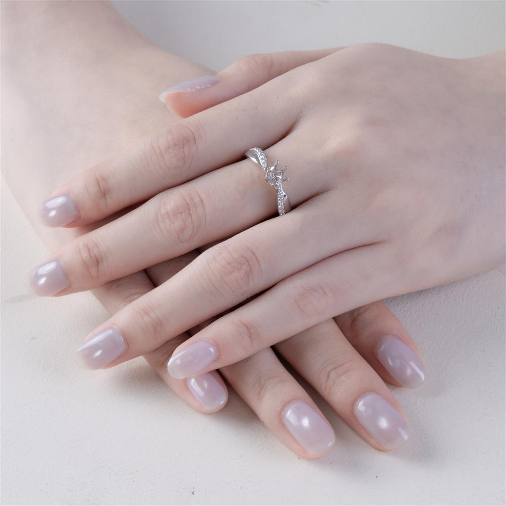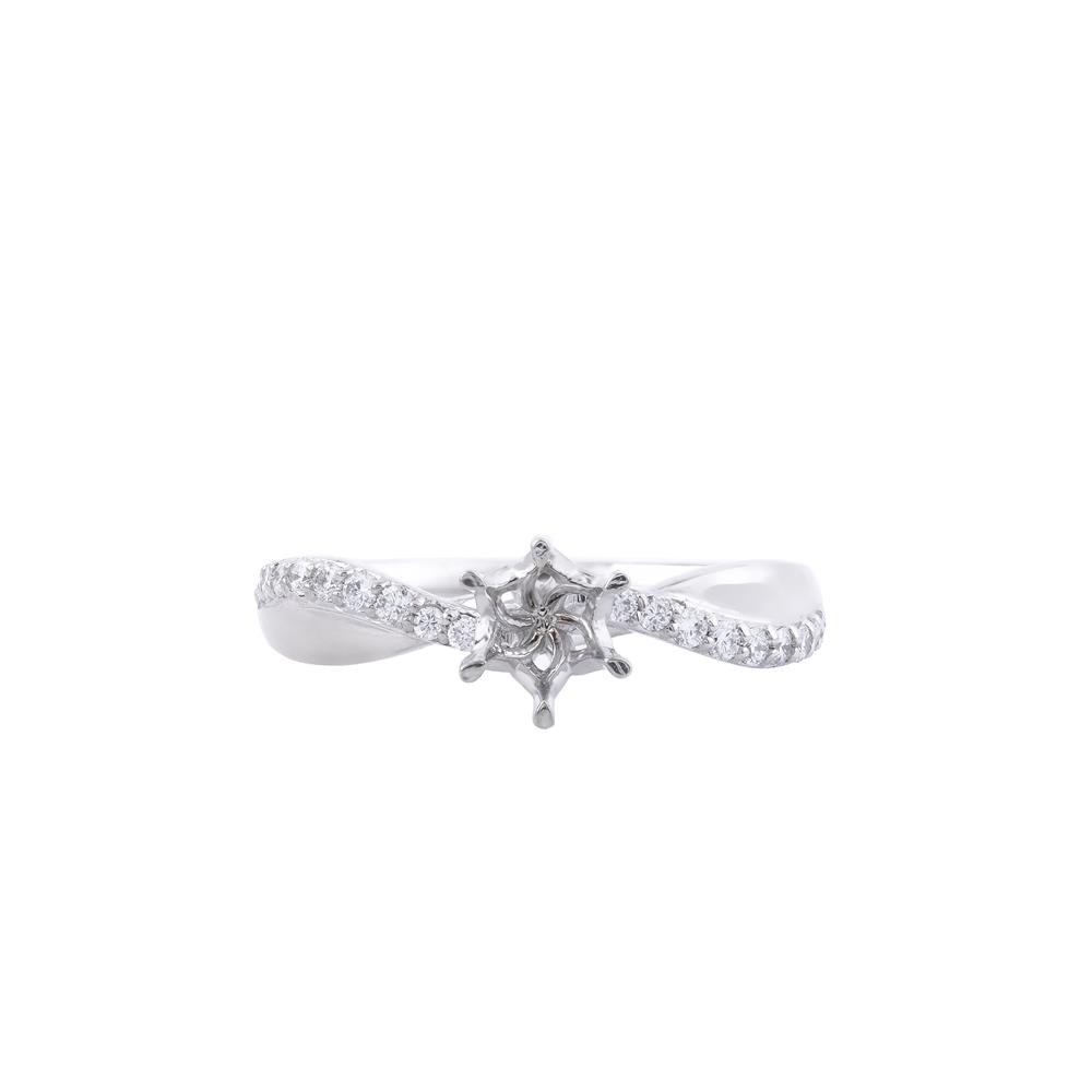 Nhẫn kim cương ổ chủ dáng xoắn ánh trắng sở hữu thiết kế mềm mại và đầy tinh tế, nổi bật với phần thân nhẫn uốn xoắn nhẹ như dải lụa ôm trọn ổ chủ ở trung tâm. Các viên kim cương nhỏ được đính dọc hai nhánh xoắn, tạo hiệu ứng lấp lánh liên tục và cảm giác chuyển động uyển chuyển trên ngón tay.