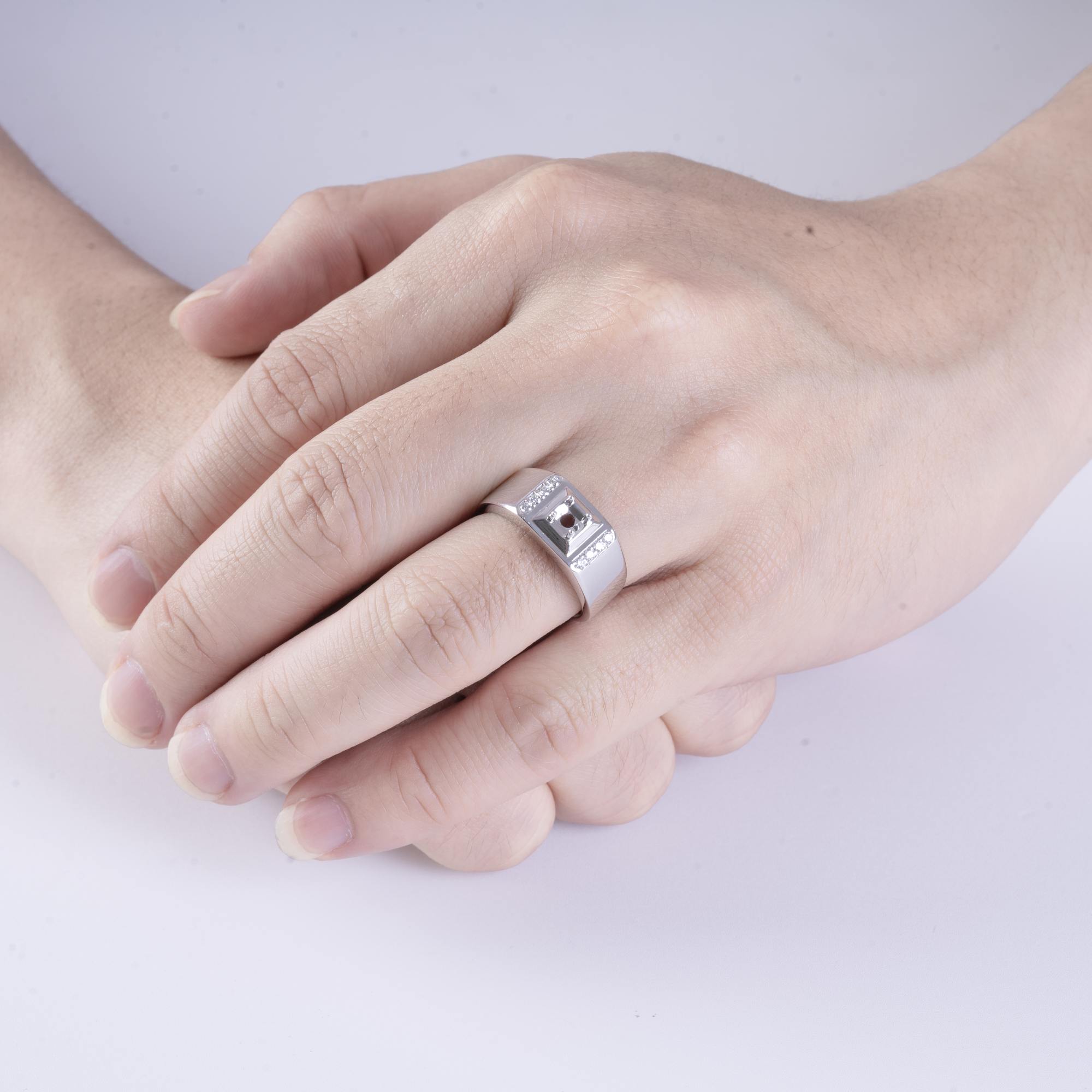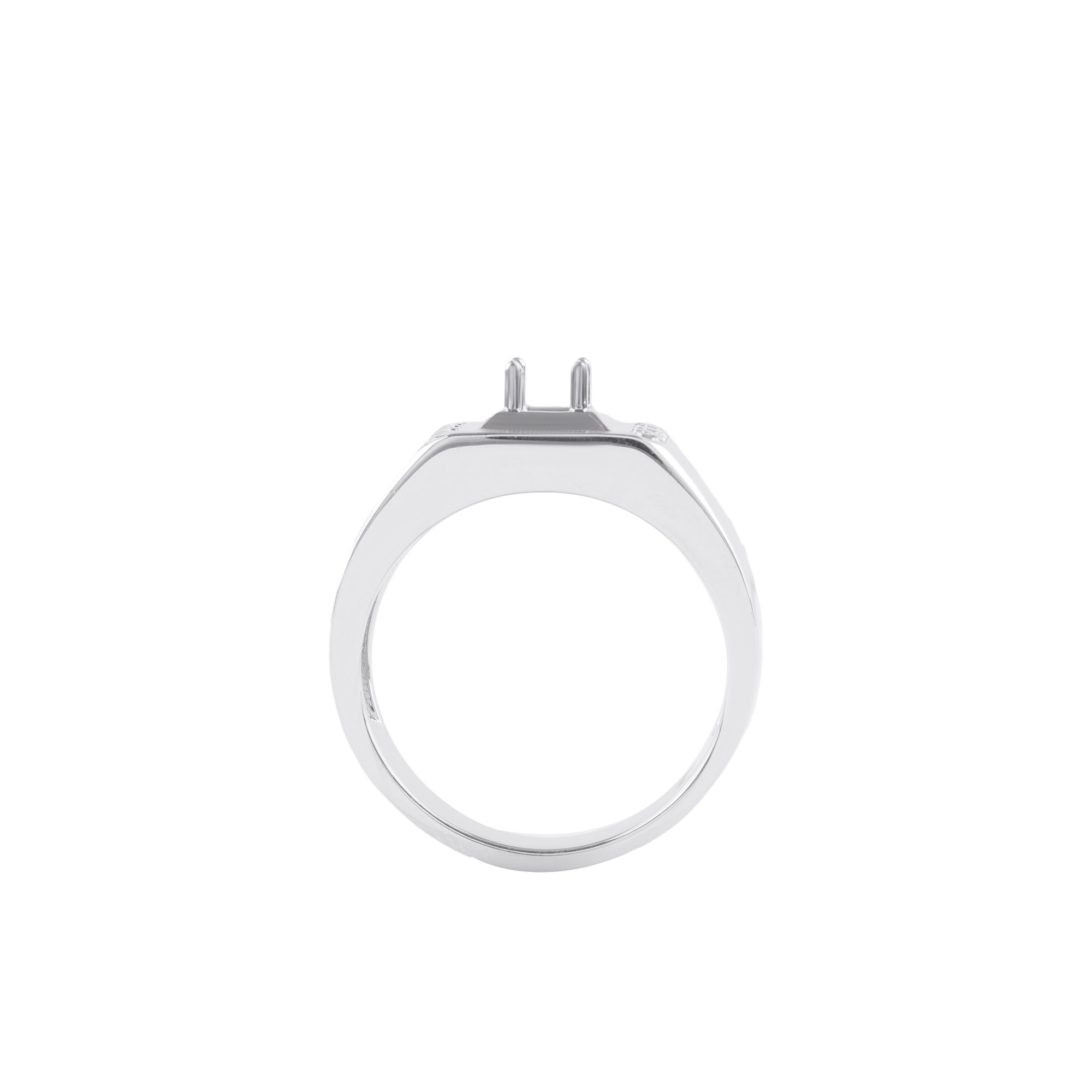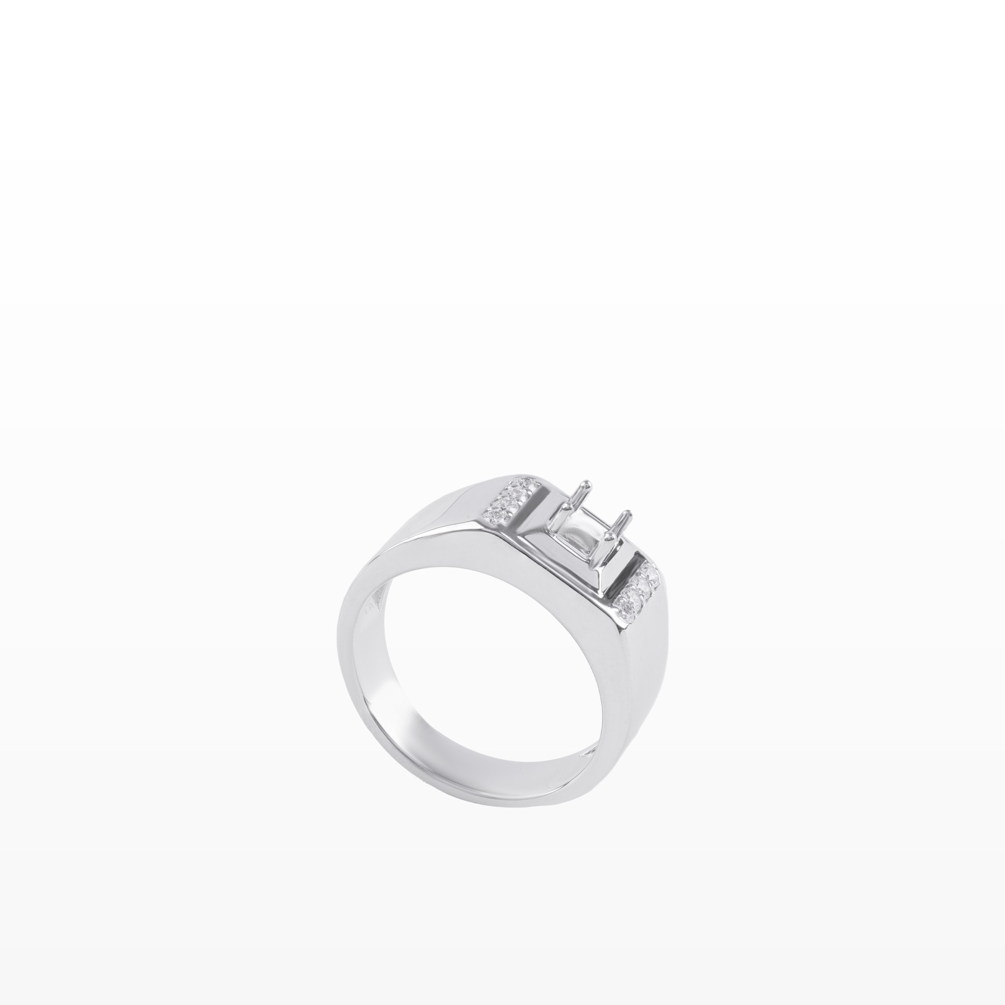 Vỏ nhẫn mang phong cách hiện đại – cá tính, với thiết kế bản lớn mạnh mẽ và phần đai nhẫn dày dặn, tạo cảm giác chắc chắn và đẳng cấp. Điểm nhấn nằm ở ổ đá vuông trung tâm – được chế tác theo kiểu khung nâng, tôn vinh viên kim cương chủ (có thể tùy chọn gắn theo nhu cầu), mang đến vẻ đẹp sắc nét và đầy quyền lực.