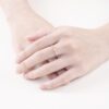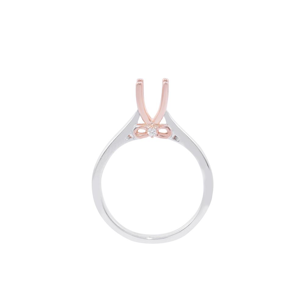 Điểm nhấn đặc biệt nằm ở họa tiết nơ duyên dáng ngay dưới ổ đá – được đính một viên đá nhỏ làm tâm điểm, tượng trưng cho sự gắn kết, tình yêu và lời hứa bền lâu. Thiết kế này giúp chiếc nhẫn vừa thanh lịch, vừa mang nét ngọt ngào tinh tế mà không quá cầu kỳ.