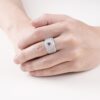Chiếc nhẫn nam bản rộng đính kim cương dày đặc, tạo nên vẻ đẹp uy quyền và đẳng cấp. Mỗi viên đá được sắp đặt tỉ mỉ, phản chiếu ánh sáng mạnh mẽ, tôn lên khí chất tự tin của người đàn ông bản lĩnh. Khuôn ổ trung tâm chờ gắn viên chủ — như mảnh ghép khẳng định dấu ấn riêng đầy kiêu hãnh.