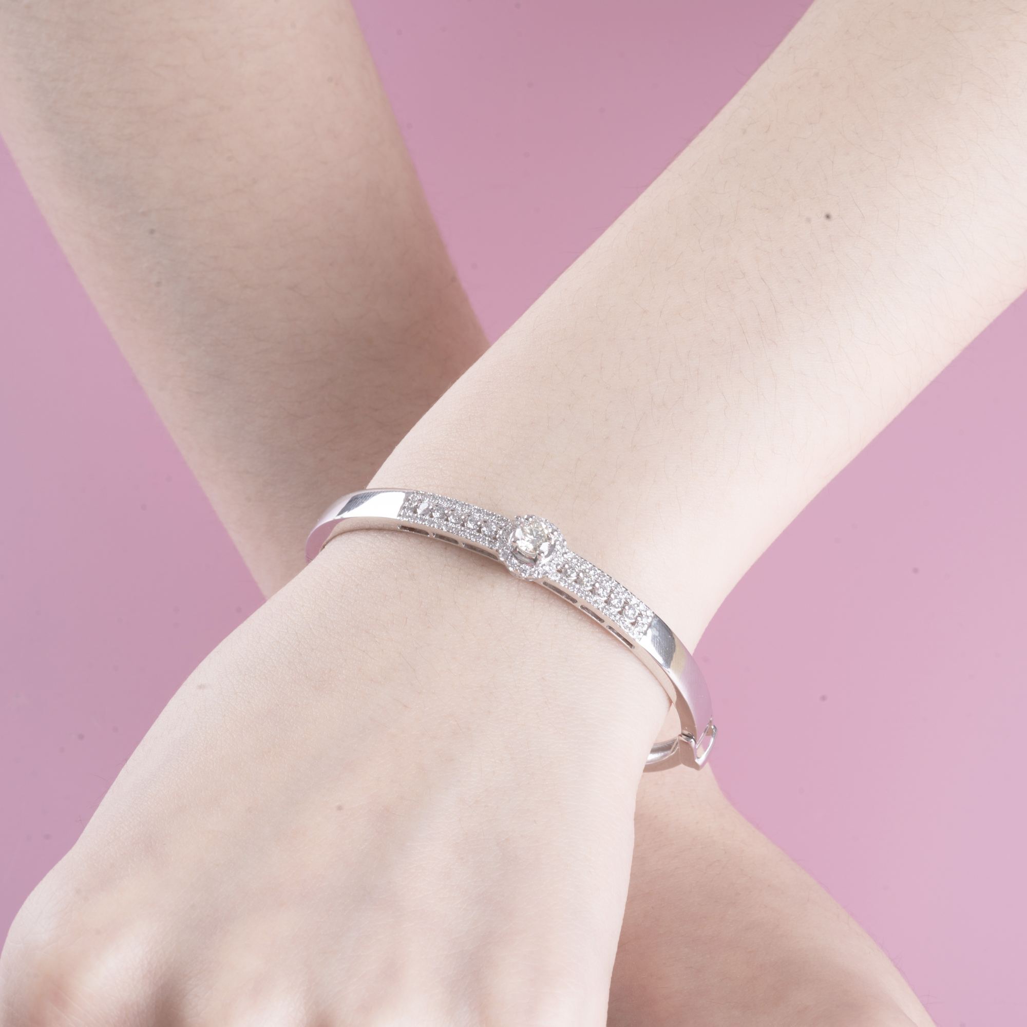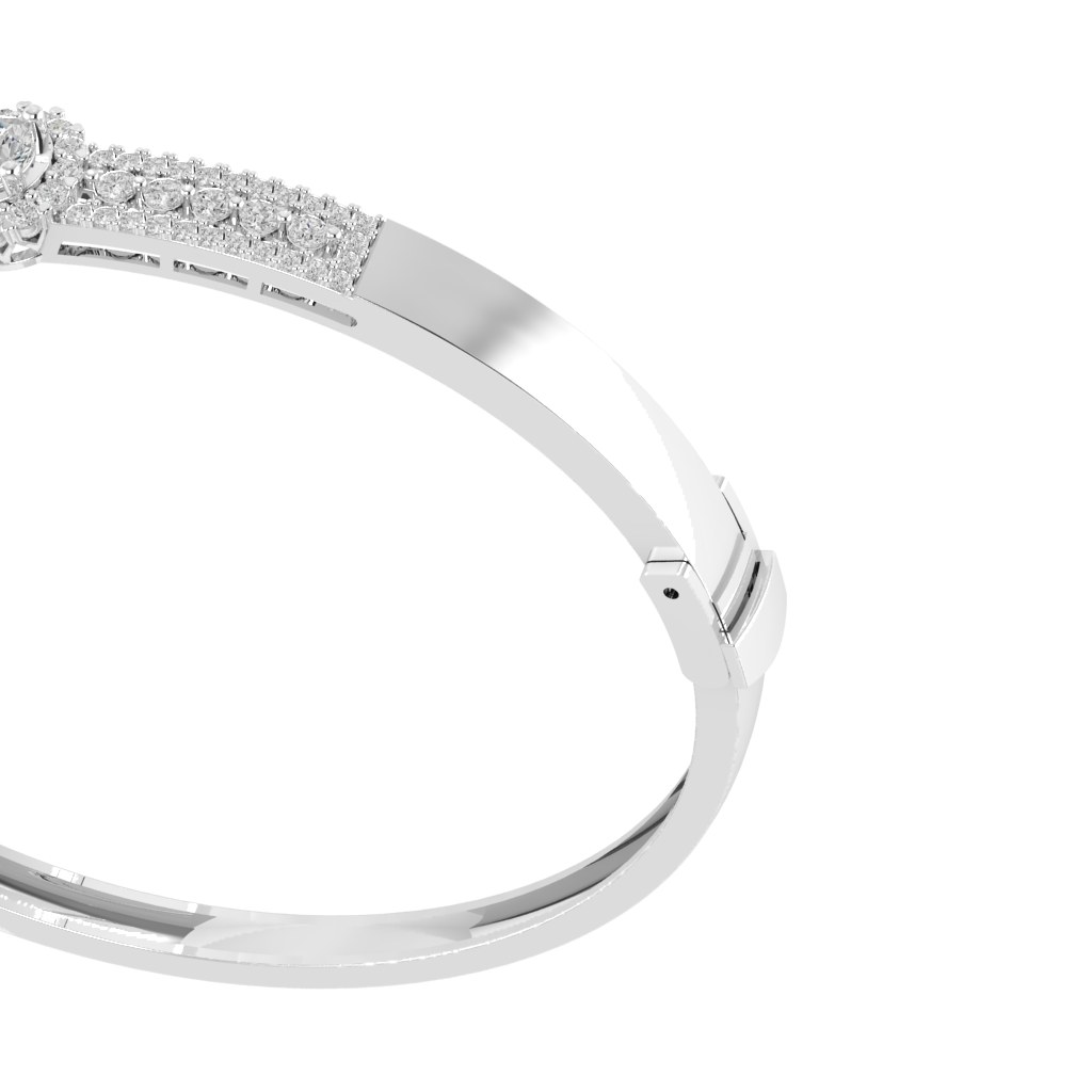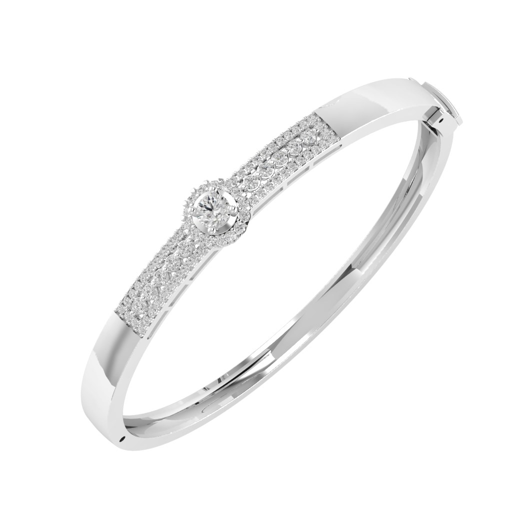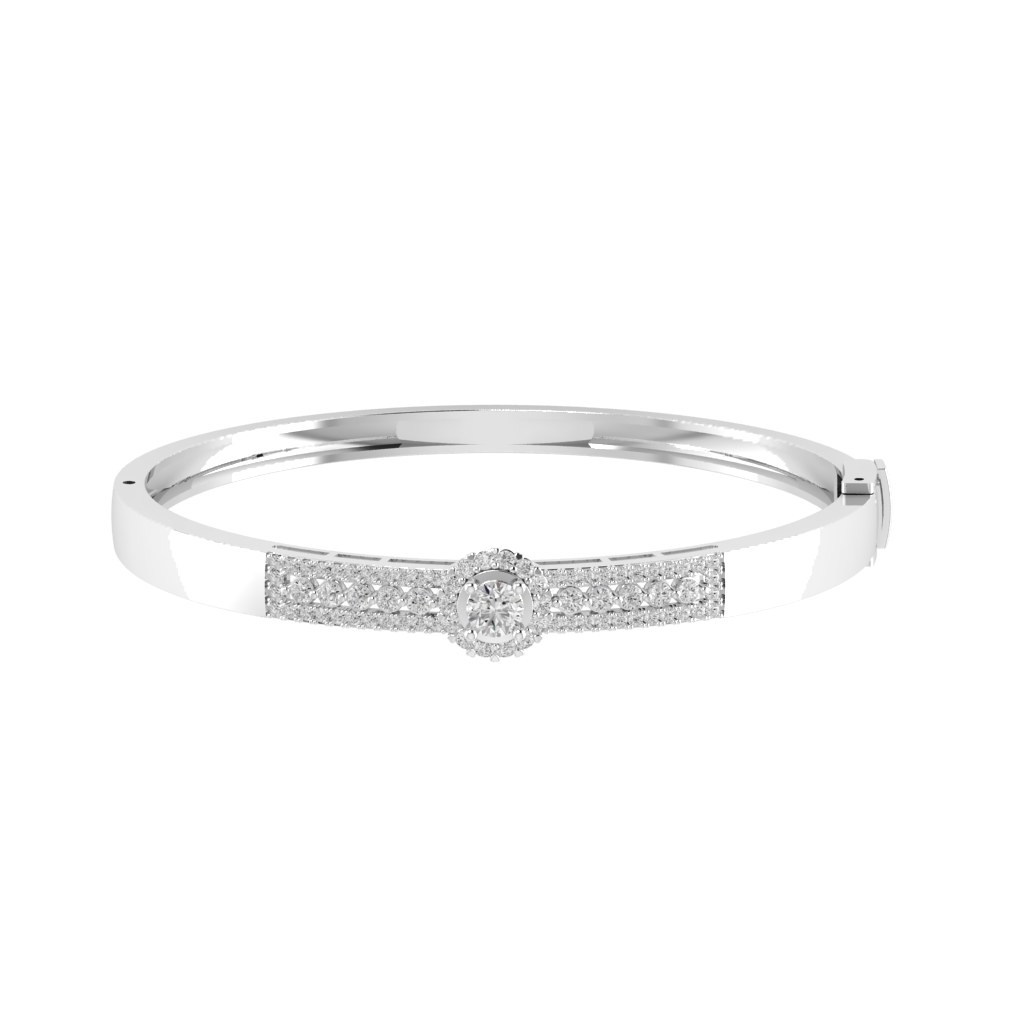Nổi bật với bề mặt được đính kim cương tấm dày dặn, tạo nên hiệu ứng lấp lánh mạnh mẽ và cuốn hút. Tâm điểm là viên đá chủ dáng tròn được bao quanh bởi vòng halo tinh xảo, giúp gia tăng độ rực rỡ và chiều sâu cho tổng thể. Một thiết kế mang đậm khí chất sang trọng, dành cho người phụ nữ tự tin, yêu thích sự nổi bật và luôn tỏa sáng trong mọi khoảnh khắc