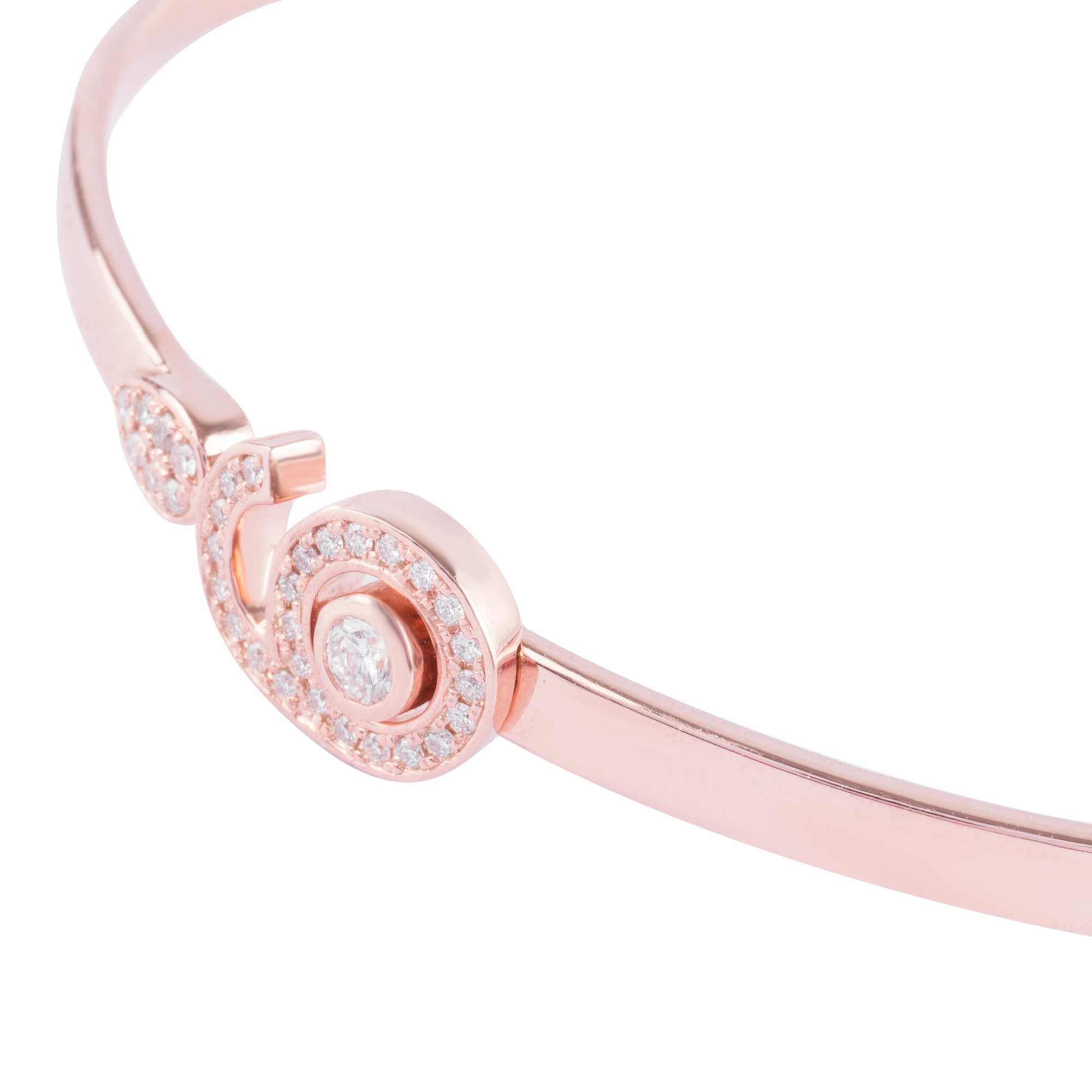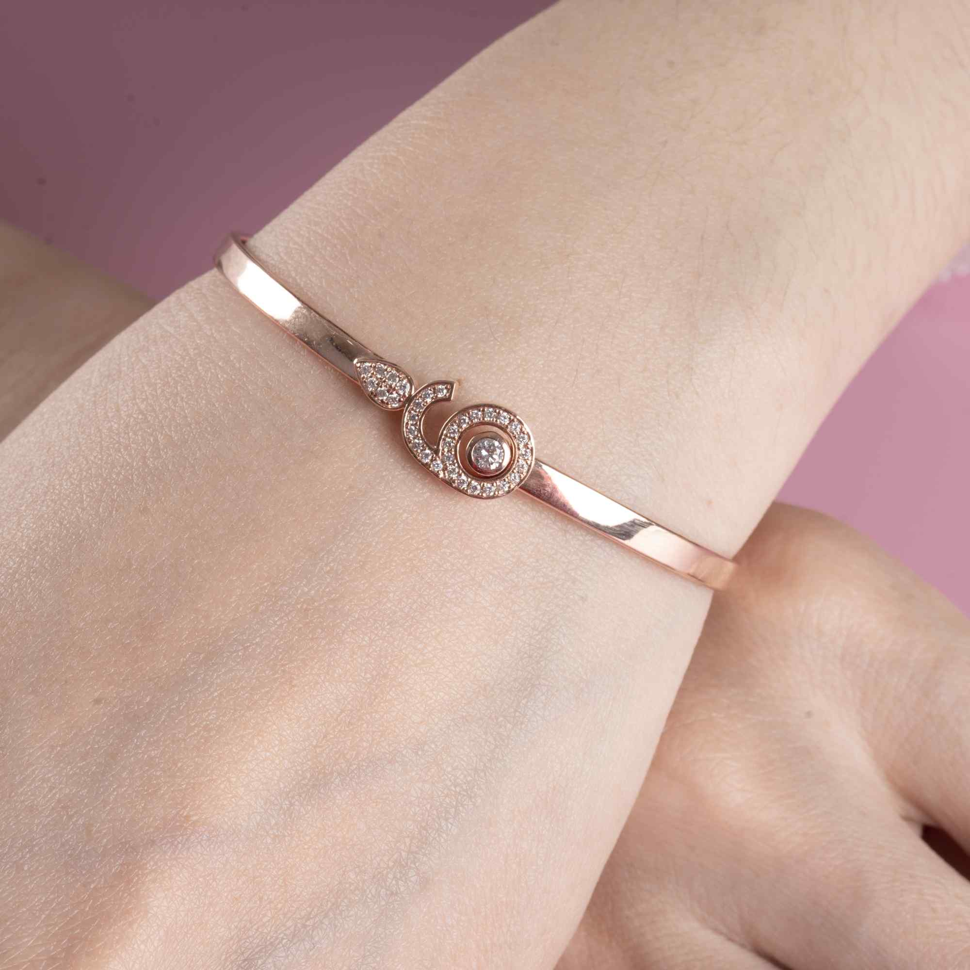 Hình số 6 mềm mại ôm trọn viên kim cương trung tâm như một vòng tay bảo vệ, tượng trưng cho trái tim biết yêu thương và sự đủ đầy trong tâm hồn. Ánh kim cương lấp lánh trên nền vàng hồng ấm áp tạo nên cảm giác bình yên, thanh lịch và đầy cảm xúc.
