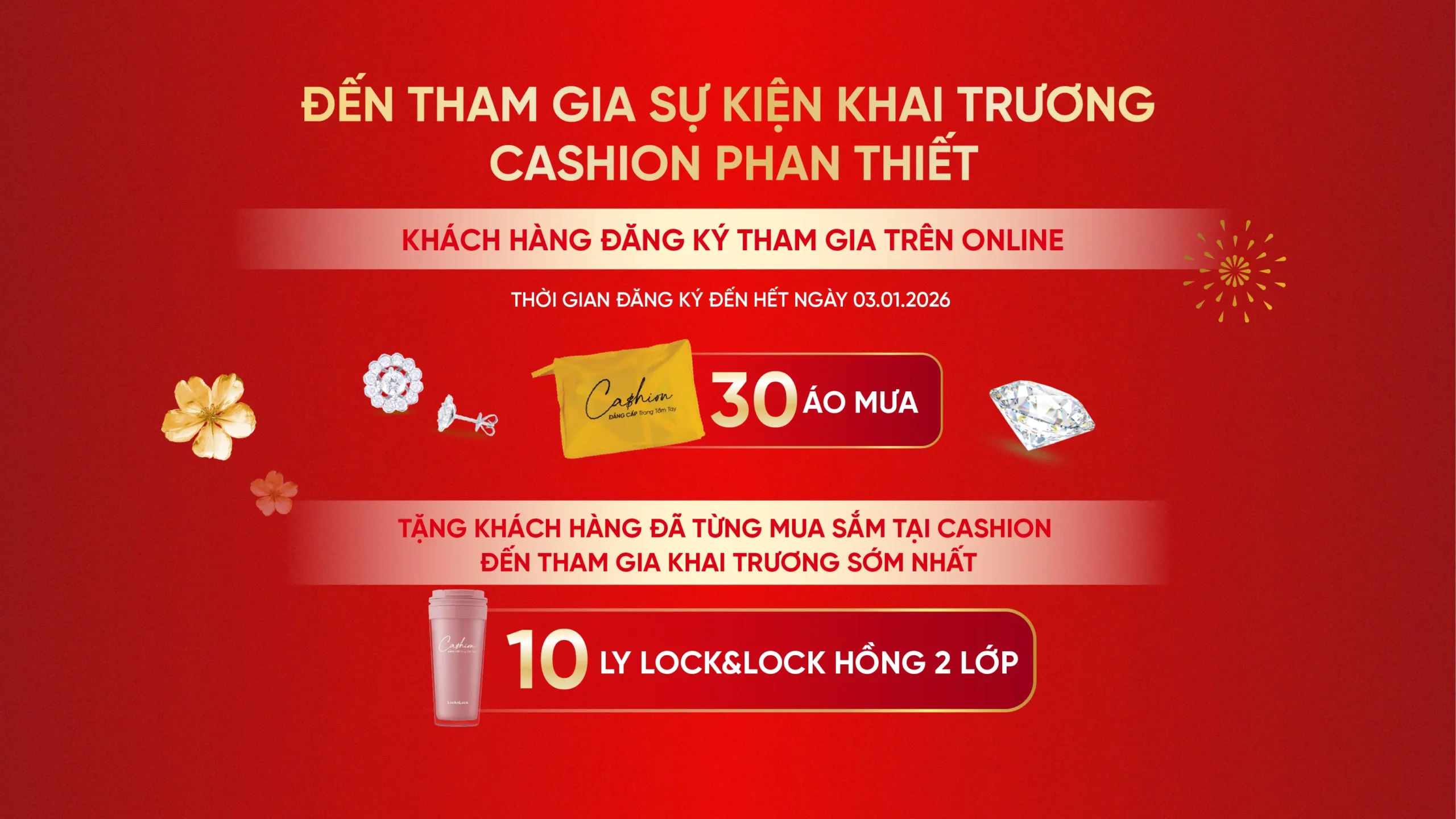 Tặng 10 Ly Lock&Lock Hồng 2 lớp xinh xắn cho 10 khách hàng đã từng mua sắm tại Cashion khi Check-in tại quầy Cashion sớm nhất từ 10H00 – 12H00 ngày 04.01.2026